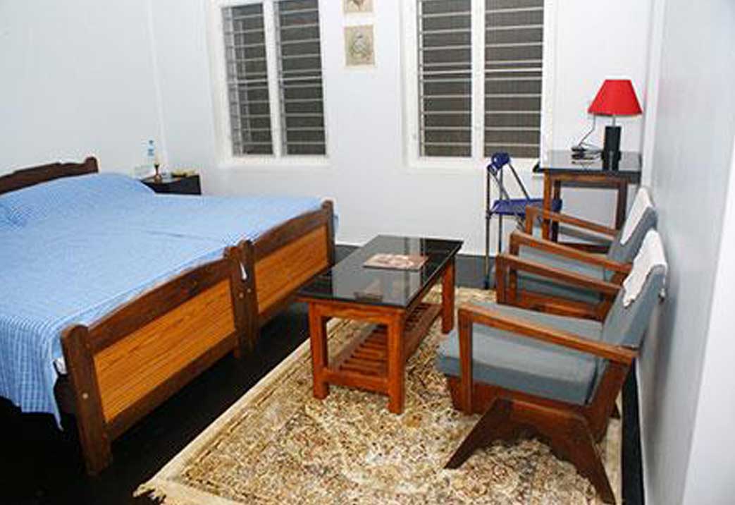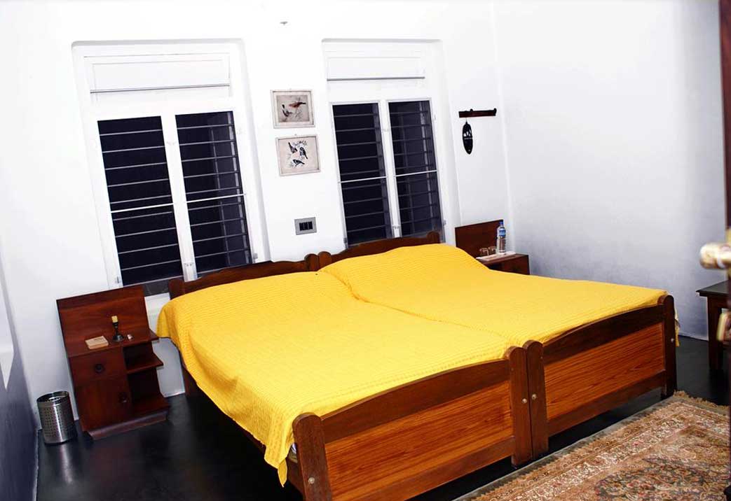 Sundara Mahal offers our guests Two exclusive rooms for their stay. This assures adequate privacy for the families as well as providing the vast common space for a life style of leisure. The rooms are furnished with King sized cots and spring beds. These 7'x7' beds should suffice for a small family but should you need an extra bed, it will be made available.